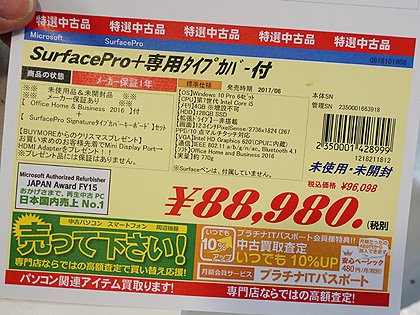 日本マイクロソフトの12.3型タブレットPC「Surface Pro」のセール品が、パソコン工房 秋葉原BUYMORE店に再入荷しています。過去に何度かセールを行っている同店ですが、「仕入れ先からは今回で最後と聞いている」(同店)とか。