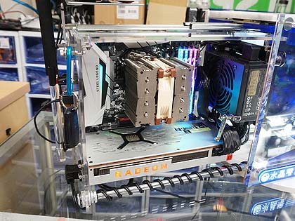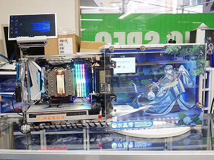 CrystalDiskMarkやCrystalDiskInfoの開発者として有名なひよひよ氏が運営するWebサイト「Crystal Dew World」の公式応援キャラクター「水晶雫」をモチーフにしたオリジナルPCが、オリオスペックで展示されています。
