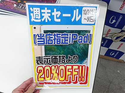 iPadシリーズの中古品セールが、ショップインバース 秋葉原2号店で10月1日(金)18:00から実施予定。