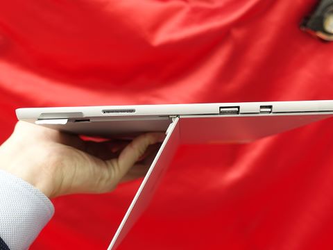 主な仕様は、ディスプレイ解像度が2,736×1,824ドット、搭載CPUがCore i5-7300U、8GBメモリ、256GB SSD、OSがWindows 10 Proなど。店頭POPによると、LTE対応モデルのようですが、「SIMスロットは動作保証対象外」とのこと。