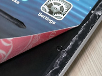 ざっくり見たところネジなどは見当たらず、どこから分解できるのかわかりません。仕方ないので、表面パネルを強引に剥がしてみることに。