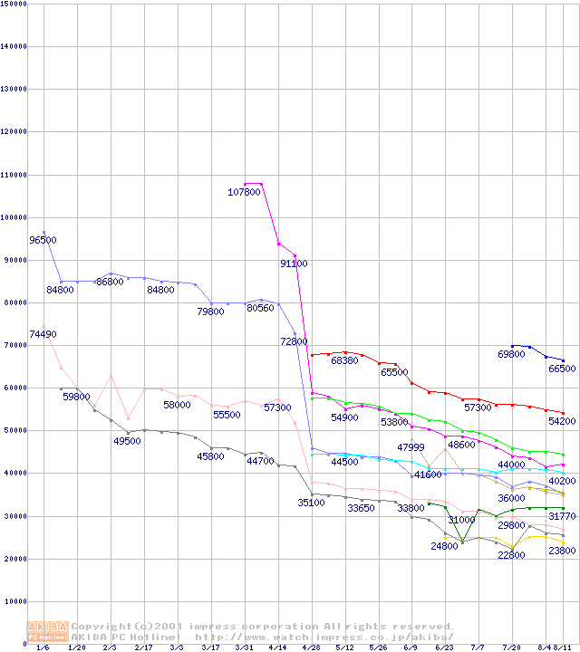 Socket 370・FSB 133MHzの最安値推移