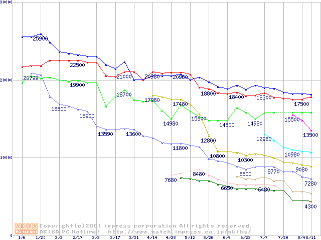 Socket 370・FSB 133MHzの最安値推移