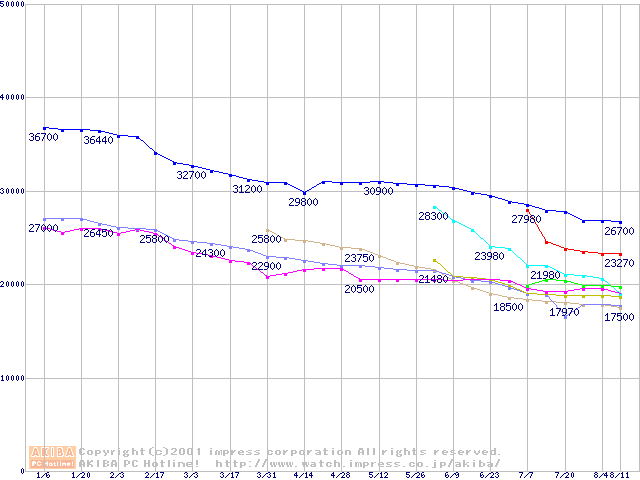 | [↓次グラフ]: | メモリ主要製品の最安値推移 |
