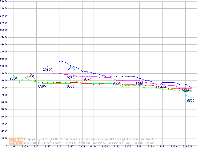| [↑前グラフ]: | HDD主要製品の最安値推移 |