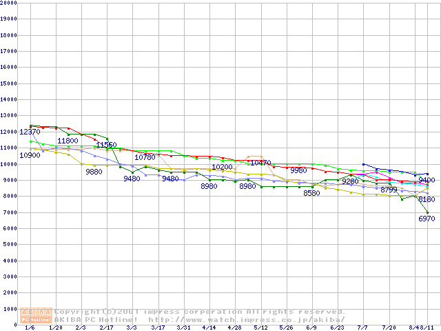 | [↑前グラフ]: | HDD 10GB~20GB未満(5,400rpmクラス)の最安値推移 |