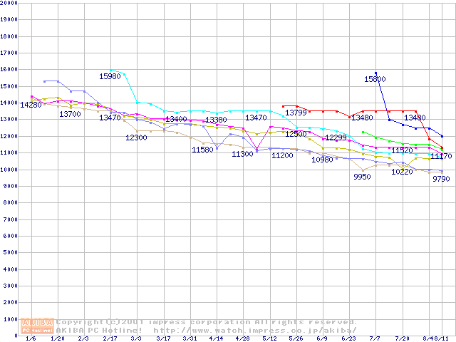 | [↓次グラフ]: | HDD 60GB以上(5,400rpmクラス)の最安値推移 |