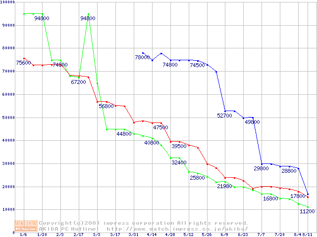 メモリ主要製品の最安値推移