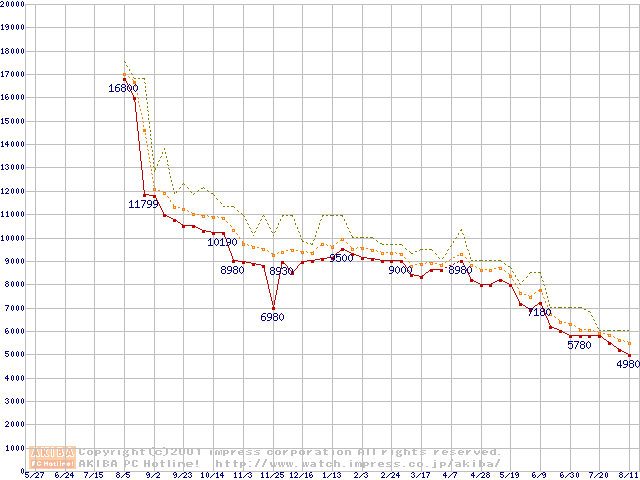 Celeron 633MHz FC-PGA リテールパッケージの価格推移