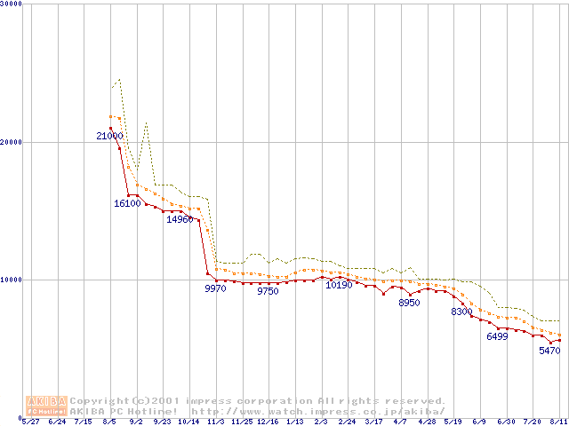 Celeron 700MHz FC-PGA リテールパッケージの価格推移