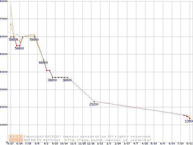 Socket 370 (FC-PGA,FSB 100MHz,L2 256KB)の最安値推移
