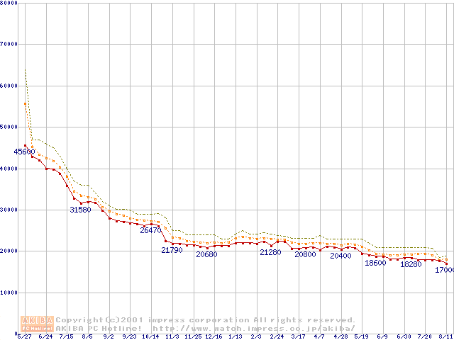 Pentium III 800EBMHz FC-PGA リテールパッケージの価格推移