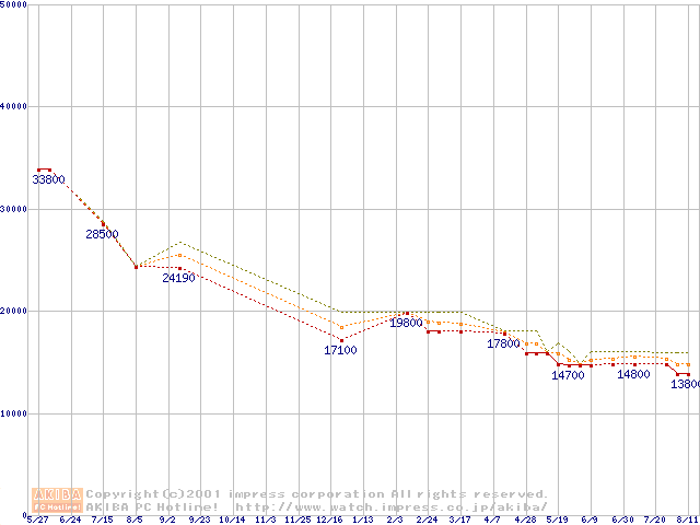 Slot 1 (SECC2,FSB 100MHz,L2 256KB)の最安値推移