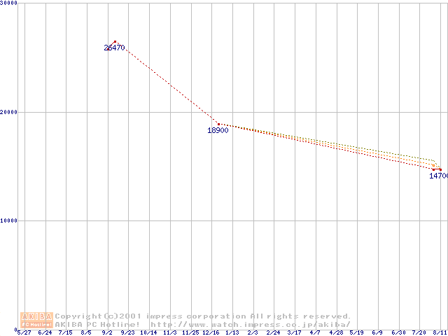 Slot 1 (SECC2,FSB 100MHz,L2 256KB)の最安値推移