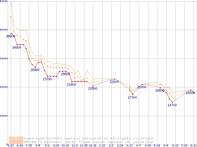 Pentium III 750MHz SECC2 リテールパッケージの価格推移