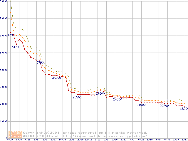 Pentium III 850MHz SECC2 リテールパッケージの価格推移