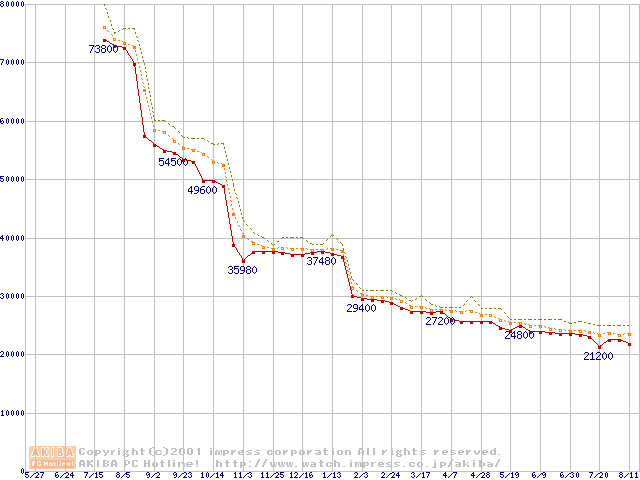 Pentium III 933MHz SECC2 リテールパッケージの価格推移