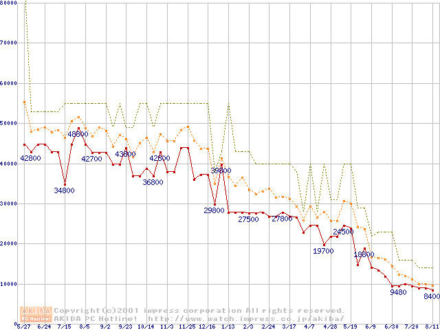 PC800 DRDRAM RIMM ECC対応の最安値推移