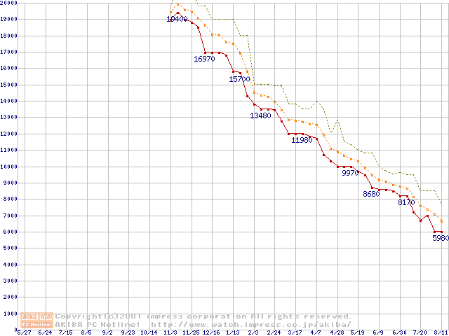 Celeron 766MHz FC-PGA リテールパッケージの価格推移