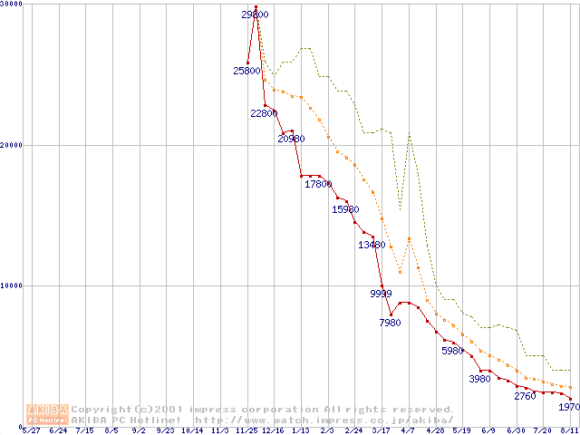 PC2100(DDR266) DDR SDRAM DIMMの最安値推移