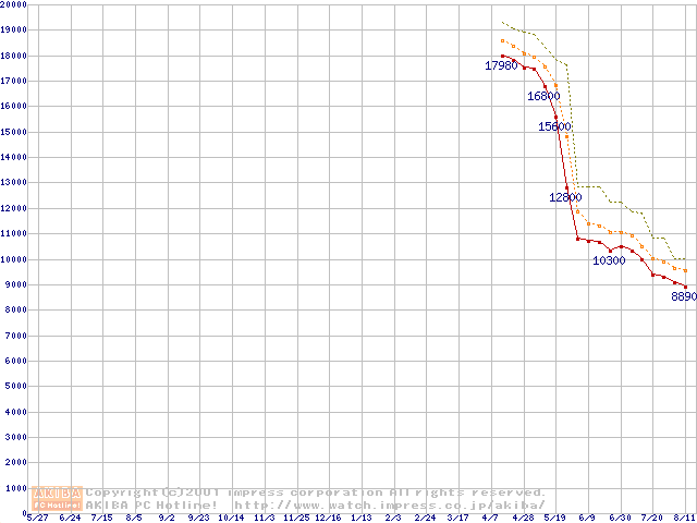 Celeron 850MHz FC-PGA リテールパッケージの価格推移