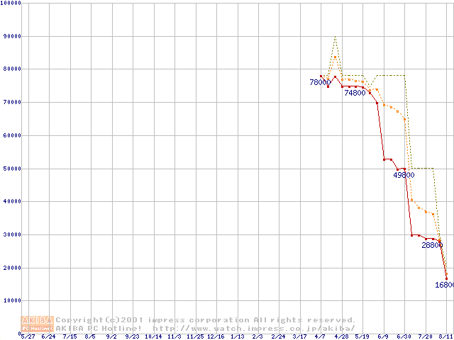 メモリ主要製品の最安値推移