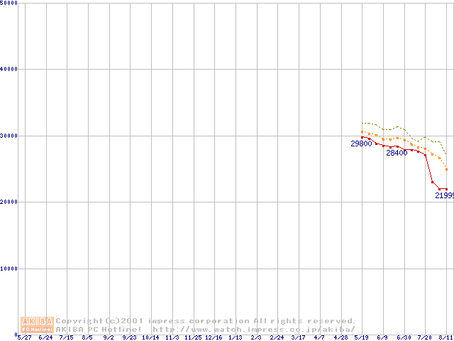 DiamondMax 536DX (5,400rpm Ultra ATA/100 33.3GB/Platter)の最安値推移