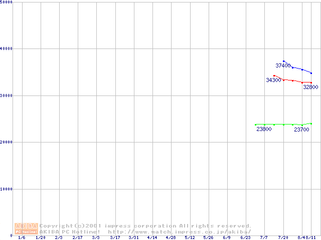 | [↑前グラフ]: | Socket 370 (FC-PGA2,FSB 133MHz,L2 512KB)の最安値推移 |