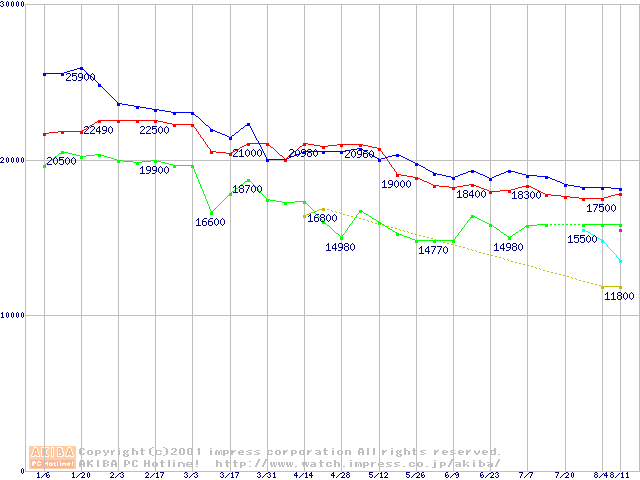 | [↓次グラフ]: | Slot 1 (SECC2,FSB 133MHz,L2 256KB)の最安値推移 |