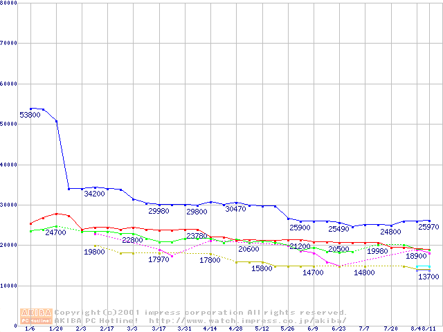 | [↑前グラフ]: | Slot 1 (SECC2,FSB 133MHz,L2 256KB)の最安値推移 |