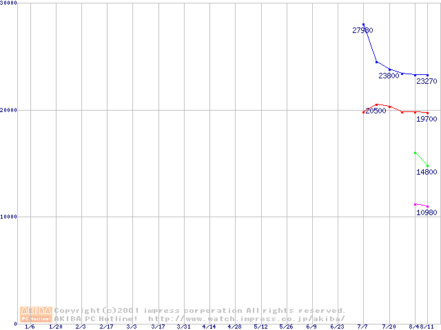 | [↑前グラフ]: | Fireball lct20 (4,500rpm UltraATA/100 128KB)の最安値推移 |