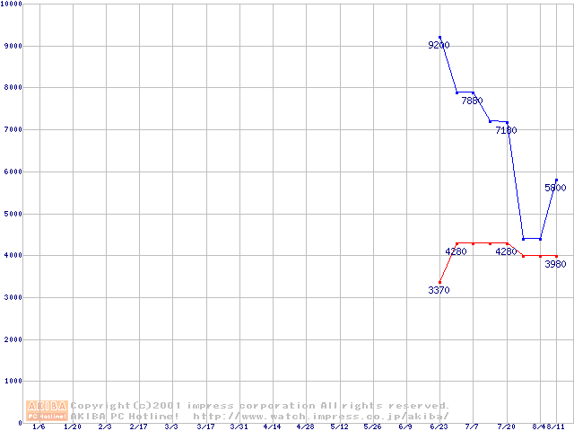 | [↑前グラフ]: | PC166 SDRAM DIMMの最安値推移 |