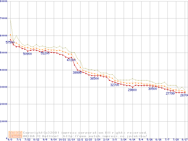 Deskstar 75GXP (7,200rpm Ultra ATA/100 2MB)の最安値推移