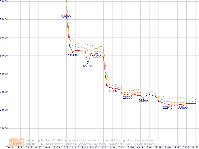 Pentium III 1BGHz FC-PGA リテールパッケージの価格推移