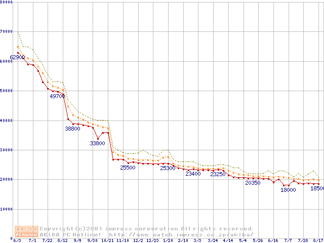 Pentium III 866MHz FC-PGA リテールパッケージの価格推移