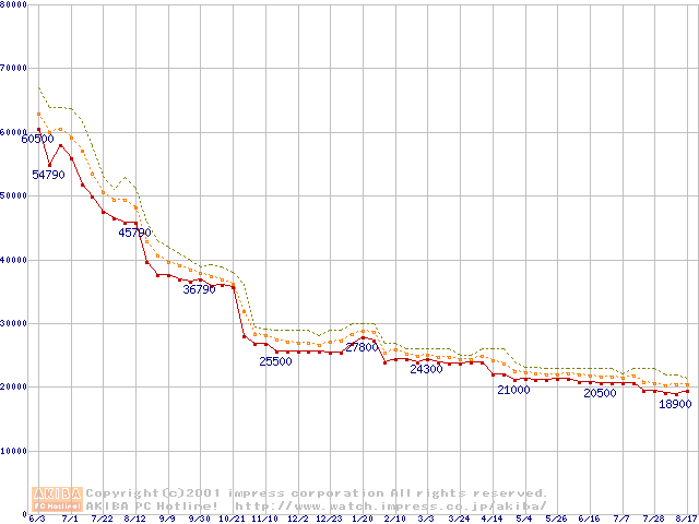 Pentium III 850MHz SECC2 リテールパッケージの価格推移