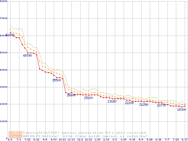 Pentium III 866MHz SECC2 リテールパッケージの価格推移