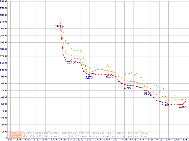 Socket A (PGA,FSB 200MHz,L2 64KB)の最安値推移