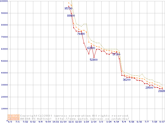 Pentium 4 1.4GHz リテールパッケージ(128MB)の価格推移