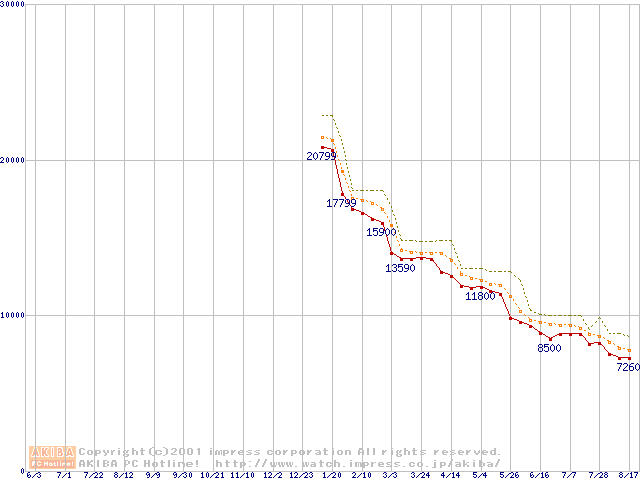 Celeron 800MHz FC-PGA リテールパッケージの価格推移
