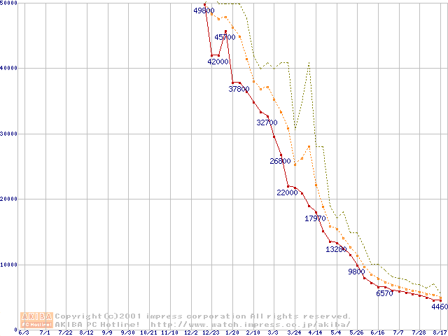 メモリ主要製品の最安値推移