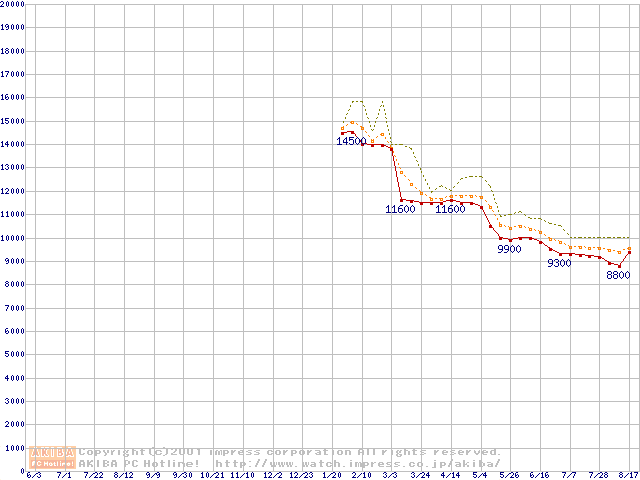 Socket A (PGA,FSB 200MHz,L2 64KB)の最安値推移