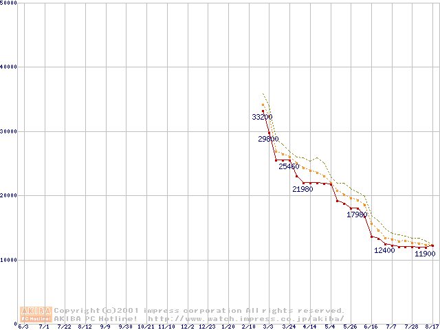 Athlon 1.13GHz(FSB266) (Thunderbird) バルクの価格推移
