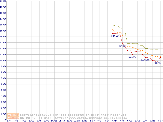 Socket A (PGA,FSB 200MHz,L2 64KB)の最安値推移