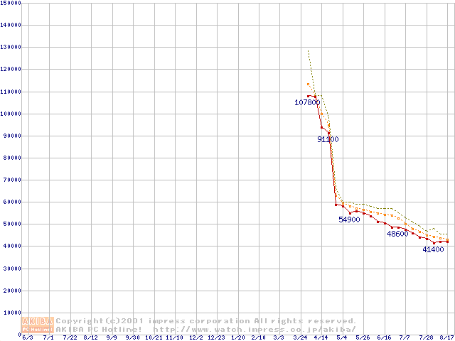 Pentium 4 1.5GHz リテールパッケージ(256MB)の価格推移