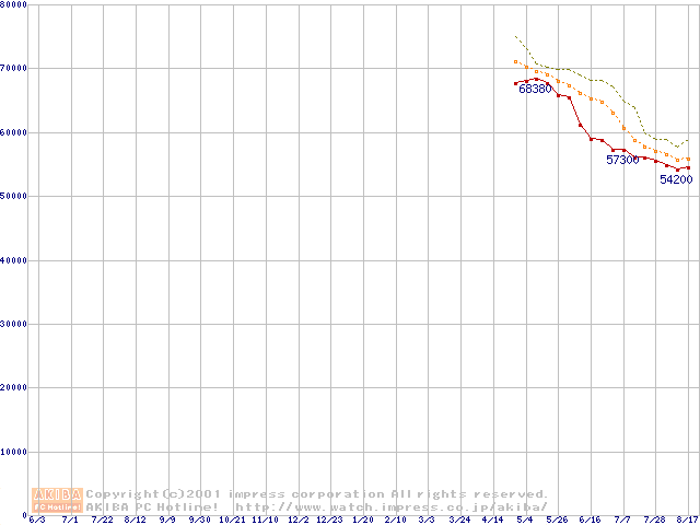 Pentium 4 1.7GHz リテールパッケージ(256MB)の価格推移