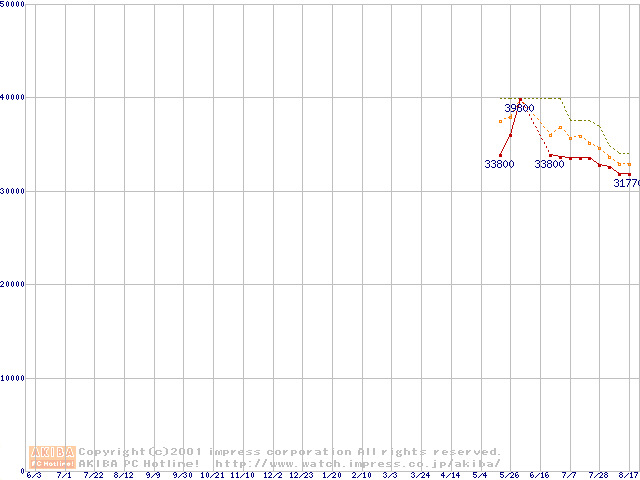 DiamondMax 536DX (5,400rpm Ultra ATA/100 33.3GB/Platter)の最安値推移