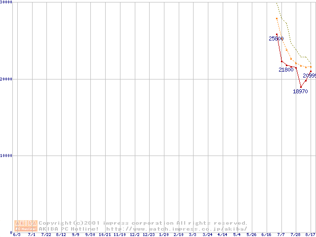 U6 (5,400rpm UltraATA/100 2MB 40GB/Platter)の最安値推移
