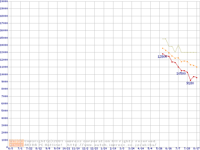 Socket A (PGA,FSB 200MHz,L2 64KB)の最安値推移