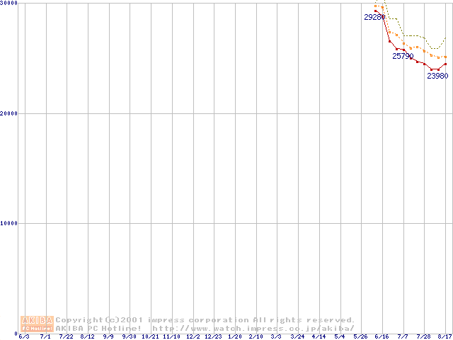 Socket A (Thunderbird,PGA,FSB 200MHz,L2 256KB)の最安値推移